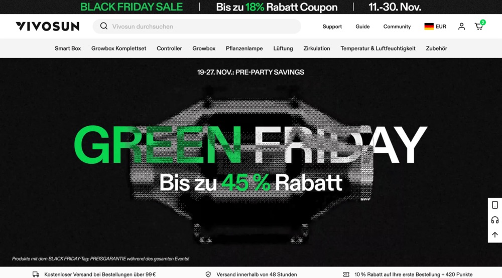Viele Vivosun Gutscheincodes gelten zeitlich begrenzt oder sind nur für bestimmte Produktkategorien verfügbar. Manche Aktionen laufen während bekannter Sale-Events wie Black Friday, Spring Deals oder Holiday Sales, andere gelten exklusiv für Newsletter-Abonnenten. Es lohnt sich also, regelmäßig nach neuen Codes zu suchen, um keinen Deal zu verpassen.