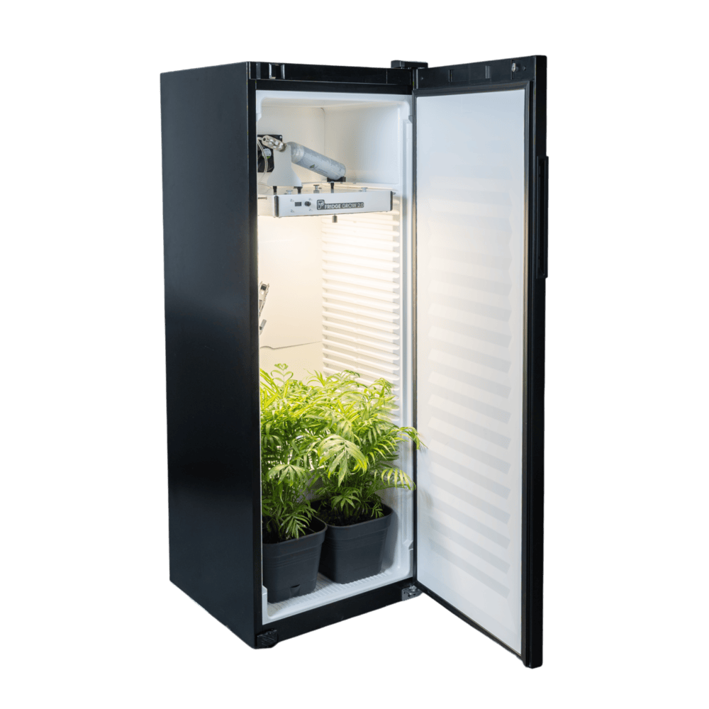 Der Fridge Grow 2.0 ist eine vollautomatische Growbox, die alle Arbeitsschritte vom Anbau bis zur Trocknung übernimmt. Sie ist für zwei Pflanzen ausgelegt und kombiniert Bewässerung, Klimaregelung, Beleuchtung und CO₂-Düngung in einem geschlossenen System.
